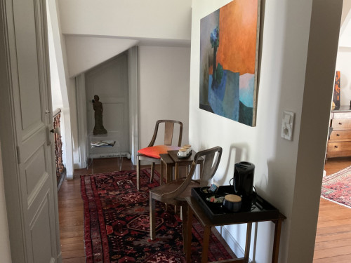 Les chambres, situées au 2ème étage du manoir, donnent sur un large palier où un espace de courtoisie vous attend : bouilloire, café, infusions, grignotages.
